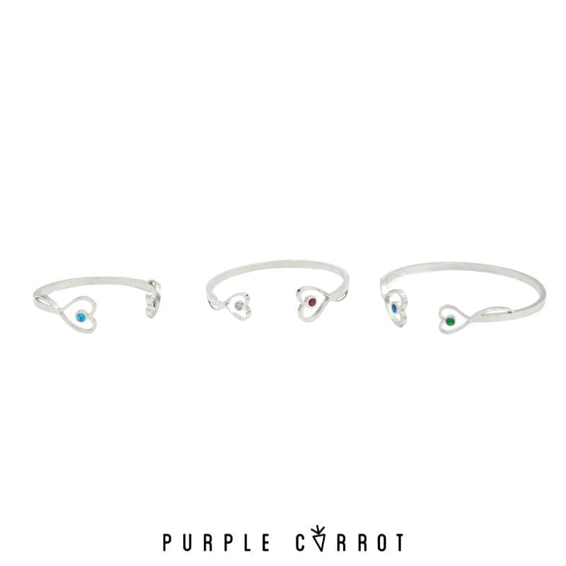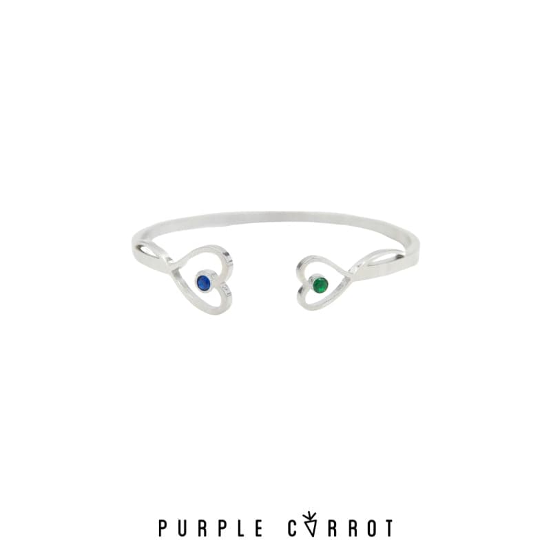 Double Birthstone Heart Cuff Bangle Different sizes