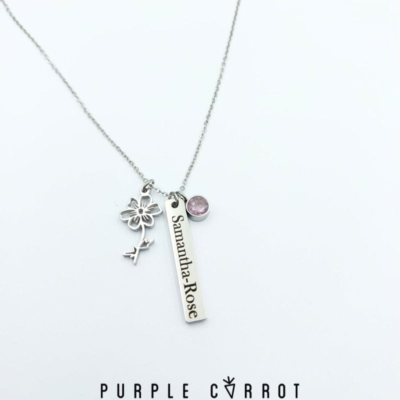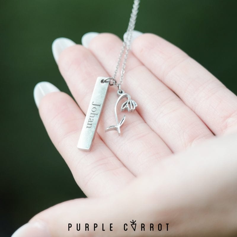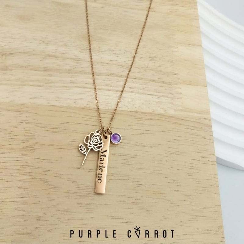 Introducing our stunning cut-out birth month flower pendant! It’s a symbol of beauty and growth. The delicate details of the flower represent the fragility of life and the importance of appreciating every moment. This pendant is not just an accessory, it's a reminder to stop and smell the flowers. You can even add a rectangular plate with a name to personalize it .