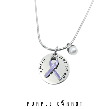Shine a light on the fight against Alzheimer's with our elegant Purple Alzheimer's Awareness Ribbon Pendant Necklace. Crafted with care, this beautiful necklace features a striking purple ribbon, symbolizing hope and support for those affected by Alzheimer's disease. In the days that you feel forgotten, this pendant will remind you just how much you are loved. The pendant’s smooth, shimmering surface catches the light, making it a meaningful accessory that can be worn every day or on special occasions. Made from high-quality materials, it offers both durability and timeless beauty. Personalize your necklace with custom engraving to make it truly unique. Whether it’s a name, date, or inspiring message, the engraved words will serve as a heartfelt reminder of the strength and resilience of those living with Alzheimer’s.