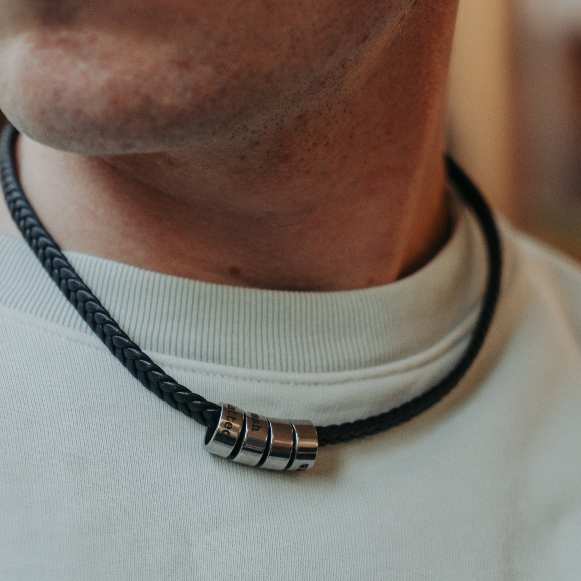 Introducing our stylish double looped leather bracelet featuring stainless steel rings that can be engraved with your own personalized message. Made from high-quality materials, this bracelet is both durable and comfortable to wear, making it perfect for daily wear. The double looped design adds a unique touch to the bracelet, while the stainless steel rings offer a sleek and modern look. The rings can be engraved with a personal message, making it a perfect gift for a loved one or a special way to express yourself. With its adjustable design, this bracelet fits most wrist sizes and is easy to put on and take off. Whether you're dressing up or down, this bracelet adds a touch of sophistication to any outfit.