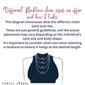 Very Important: Please note that necklace lengths will vary on how they hang depending on the size of your neck. To ensure the best fit, we recommend measuring your neck with a chain to determine the most suitable length. The size depicted in the image corresponds to ladies wearing sizes 34 to 40