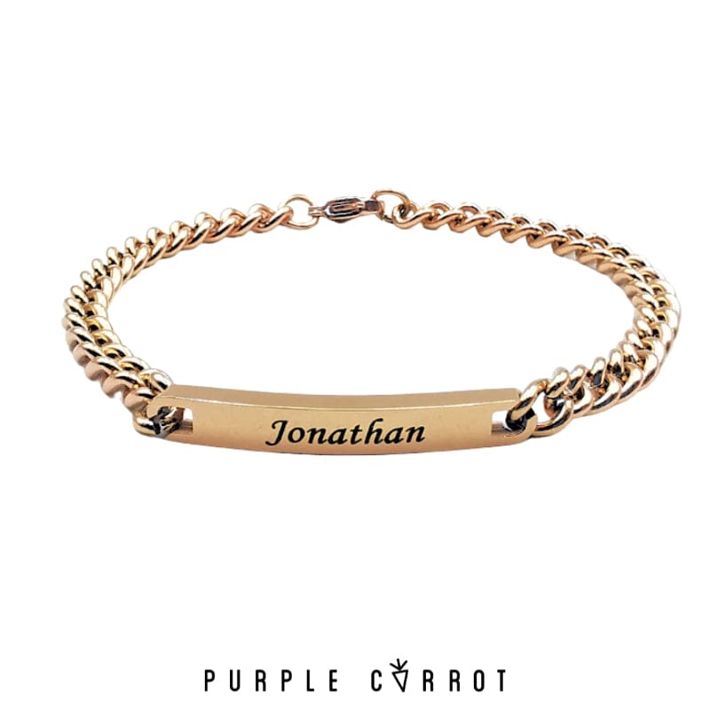 Introducing our stunning black/rosegold bracelet that can be engraved with your choice of personalization, making it a unique and meaningful gift for yourself or a loved one. Crafted with high-quality materials, this bracelet is designed to be durable and withstand daily wear. The sleek black/rosegold design gives it a modern and sophisticated look, making it the perfect accessory for any outfit. Personalize it with your name, a special date, or a heartfelt message to create a one-of-a-kind piece that you'll treasure for years to come. Whether you're looking for a special gift or a stylish accessory for yourself, our black/rosegold bracelet is the perfect way to showcase your style in a personalized way. BRACELETS SOLD SEPERATELY |