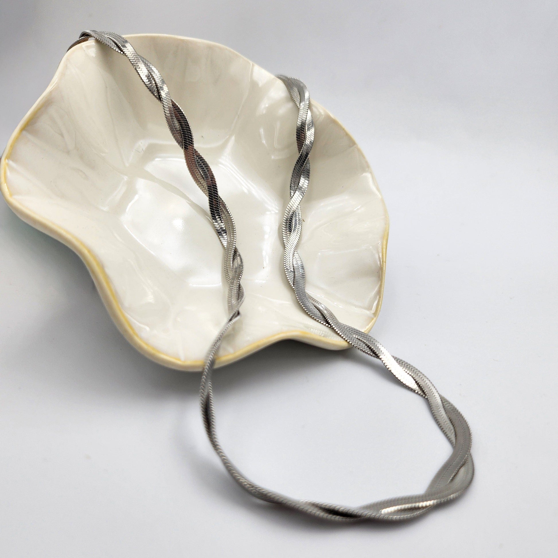Experience the luxury of movement. Our Braided Snake Chain Necklace is crafted from two smoothly interwoven flat chains, creating a continuous braid that drapes beautifully and catches the light from every angle. It has a beautiful, silk-like feel against the skin and an intense, mirror-like shine that makes it feel like molten silver. It’s the perfect stand-alone statement or a sleek layer for your necklace stack. |