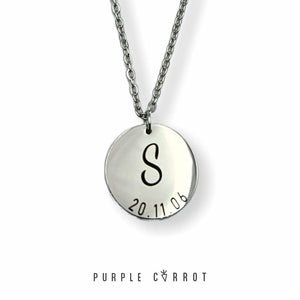 Introducing our Initial disc, a simple yet elegant piece of jewelry that is perfect for commemorating a special date or occasion. The disc features a single initial and a date of your choice, delicately engraved on the front. Made from high-quality materials, this piece is designed to last and is a great way to add a personal touch to your jewelry collection. Whether you wear it as a subtle reminder of a significant moment in your life or give it as a thoughtful gift to someone special, this personalized disc is sure to be cherished for years to come.