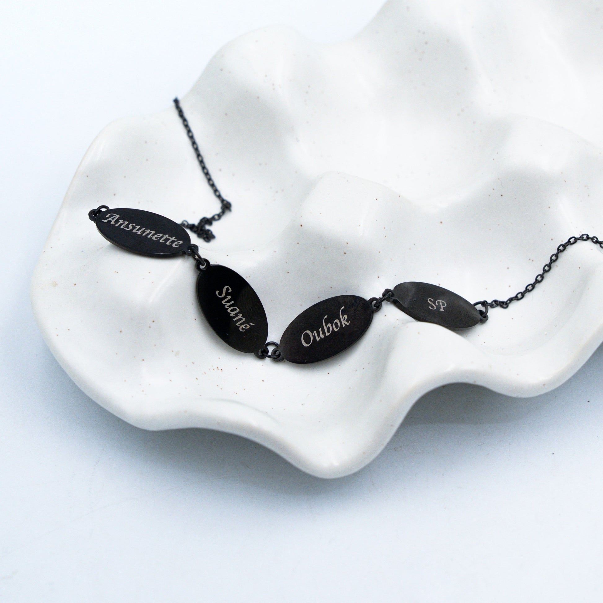 A beautifully personalised Oval Disc Bracelet, lovingly engraved with names, dates or heartfelt messages—each disc a cherished reminder of those who matter most. It’s a timeless token of love designed to be worn close to your heart every day. |