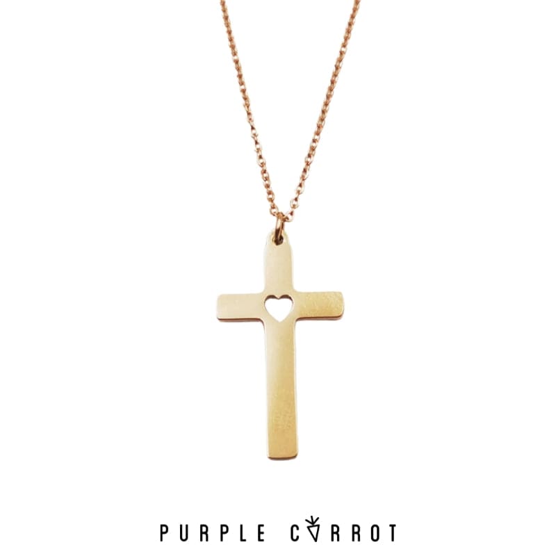 This elegant cross necklace features a beautiful cut-out heart design, adding a unique and personal touch to a beloved symbol of faith. Made with high-quality materials, the delicate chain and intricate detailing make this necklace a stunning addition to any outfit. Express your love and faith in a subtle yet stylish way with this beautiful cross necklace. Perfect as a gift for a loved one or as a meaningful addition to your own jewelry collection. |