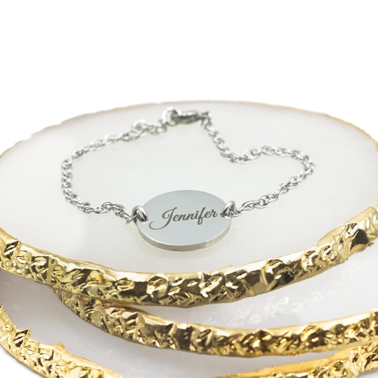 Introducing our Customisable Round Disc Bracelet — a timeless accessory that combines elegance with personalization. Crafted with care, this bracelet features a sleek round disc, ready to be engraved with your chosen message, name, or date. The minimalist design of the round disc bracelet ensures versatility, allowing it to complement any outfit, from casual to formal. Whether worn alone as a statement piece or layered with other bracelets for a personalized look, it adds a touch of sophistication to your ensemble. Made from high-quality materials, our Round Disc Bracelet is built to last, ensuring it remains a cherished accessory for years to come. Its adjustable chain ensures a comfortable fit, making it suitable for wrists of all sizes. Celebrate special moments, cherished memories, or simply express yourself with our Round Disc Bracelet — a timeless piece of jewelry that's as meaningful as it is stylish. |