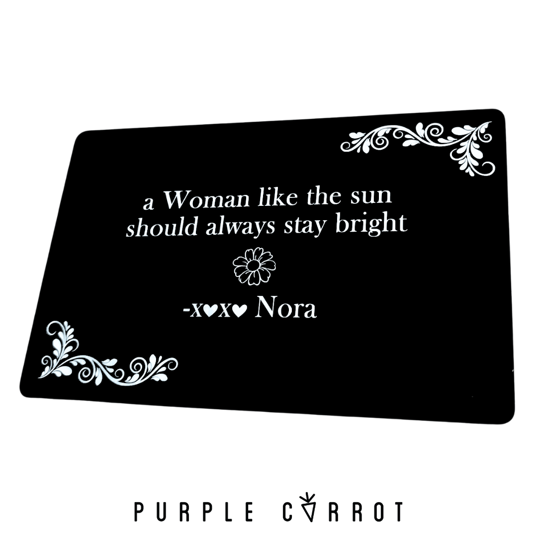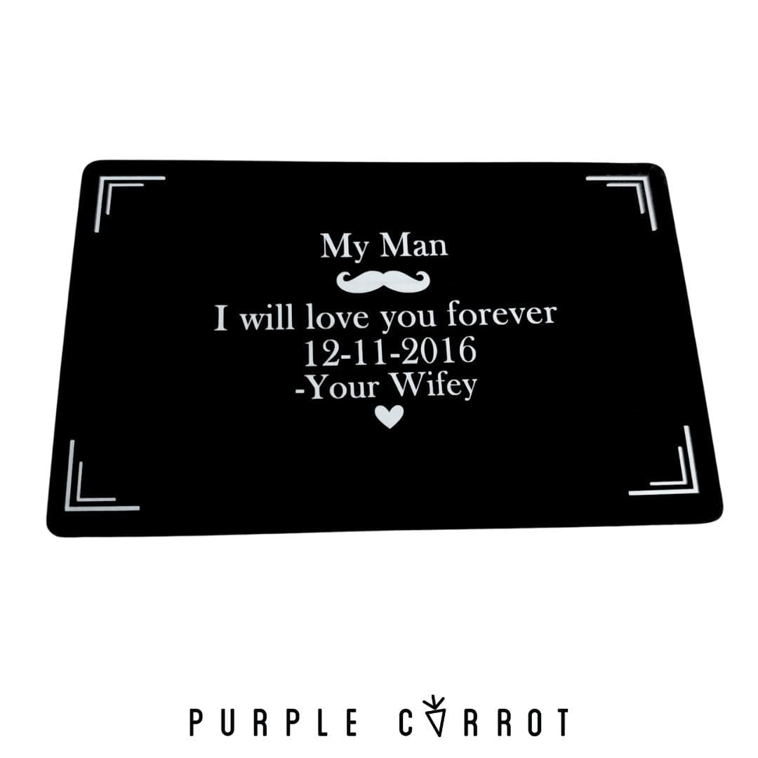This product offers the option for Engraving. For details on the customization possibilities, such as text length or font options, please refer to the engraving instructions provided on the product page Purple Carrot engraves items exactly as specified in the engraving detail boxes by the customer. We do not conduct spell checks or reach out to clients about spelling errors, as it's the customer's responsibility to ensure the accuracy of the engraving details provided