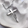 Keep your loved one's name or your own close to your heart with our Dainty Cross Cutout Name Necklace. This elegant pendant is a beautiful fusion of faith and personal identity. Crafted from high-quality stainless steel, the name is intricately laser-cut into the heart of the cross, creating a stunning and unique piece. It's the perfect daily reminder of what's most important.