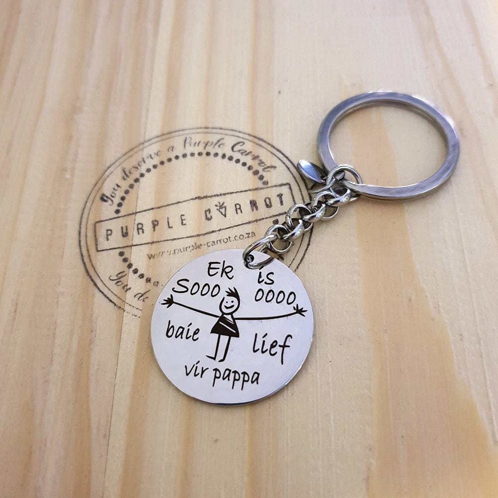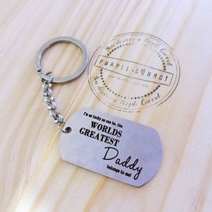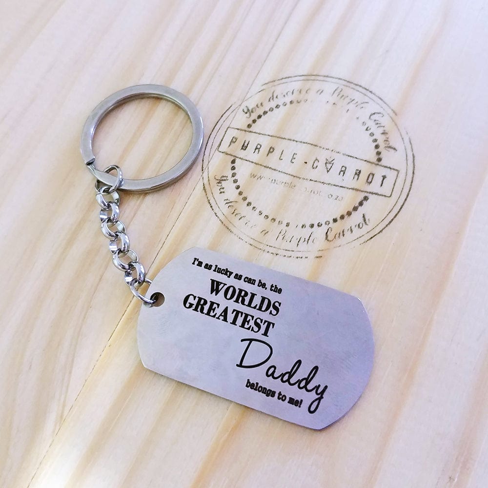 Introducing our Dad keychain, the perfect gift for any father figure in your life. This keychain features a round disc that can be engraved with a special image or message, making it a truly unique and personal gift. Made from high-quality materials, this keychain is both durable and stylish, with a sleek and sophisticated design that any dad would be proud to carry. The keychain comes with a sturdy keyring that can hold all of your important keys, making it a practical and useful accessory as well as a sentimental one. Whether you're looking for a Father's Day gift, a birthday present, or just a thoughtful way to say "I love you," this keychain is sure to make your dad feel appreciated and loved. So why not give your dad a gift that he can carry with him wherever he goes and remind him of your love and appreciation every day? |