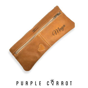 These beautiful pencil bags are available with a heart or without one. It's 2 compartments allows you to keep all your stationery and more all together! Handmade with high-quality genuine leather and complimented by a variety of gorgeous fabrics, these pencil bags are a must have. Personalise your pencil bag by engraving your name on it for only R65 extra. PLEASE NOTE: If you add engraving please allow another 10 working days Kindly allow 10 -15 working days for manufacturing. |