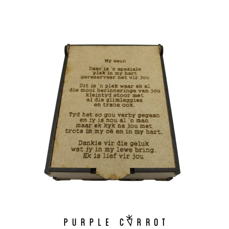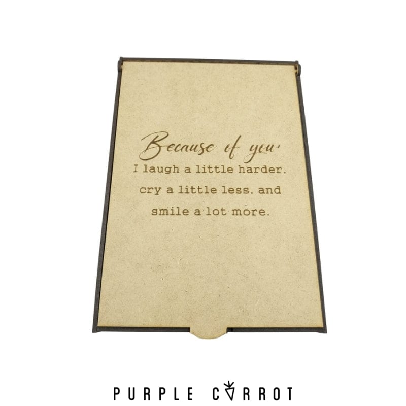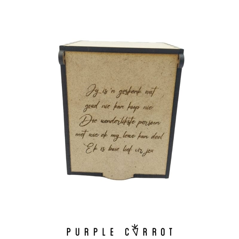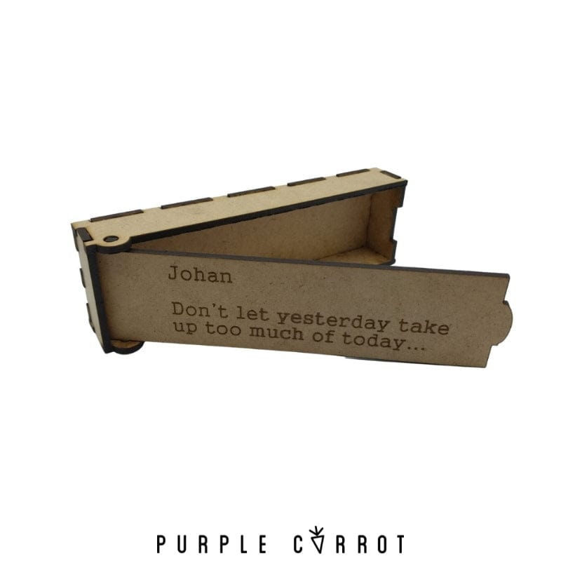 Our wooden gift boxes with personalized engravings are the way to go! Our expert engravers can create a customized message on the highest quality wooden gift box that will complement the thoughtful gift inside. Whether it's for a special occasion or just a way to show how much you care, our engraving service is the perfect choice.