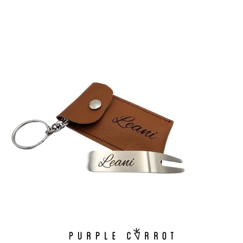 Size of items: Pitch repair tool: 7,5cm(l) x 1,5cm(w) Leather Holder for Divot Tool: 9,5cm(l) x 5,5cm(w) Golf marker:25mm Leather Holder for Golf Marker: 5,5cm(W) & 7cm(L) |