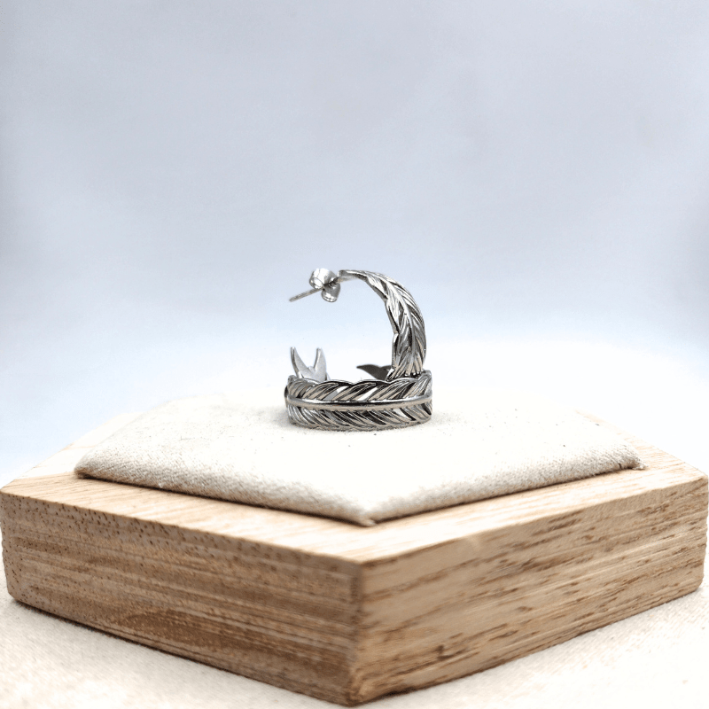 Embrace the spirit of freedom with our Lustrous Feather Open Hoops. Delicately sculpted to mimic the graceful form of a feather, these silver earrings symbolize lightness and grace. Their intricate details catch the light with every turn, adding a touch of elegant, nature-inspired beauty to your personal style. |
