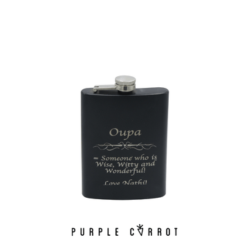 Introducing our personalized flask, the perfect accessory for any occasion. Made from high-quality stainless steel, this flask is durable and designed to last. What sets it apart is the ability to add a personal touch with custom engraving. With ample space for a name, initials, or a special message, this flask is a thoughtful and unique gift for yourself or a loved one. Whether you're celebrating a special occasion or just want to add a touch of style to your drinkware collection, our personalized flask is the perfect choice.