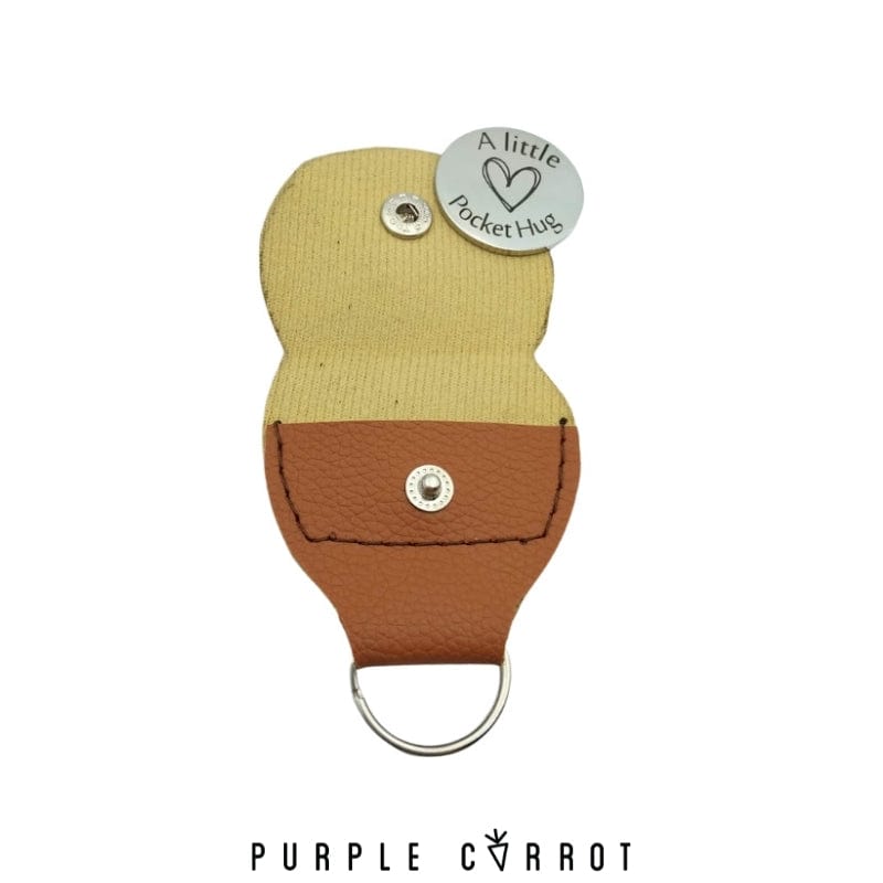 Show Your Love from Afar with a Pocket Hug! Want to send a message to your significant other even when you're not together? This thoughtful little gift includes an engraved round disc and leather keyring holder, perfect for carrying on a purse, keys or bag. It's the perfect way to remind your loved one that you're thinking of them even when you're apart. |