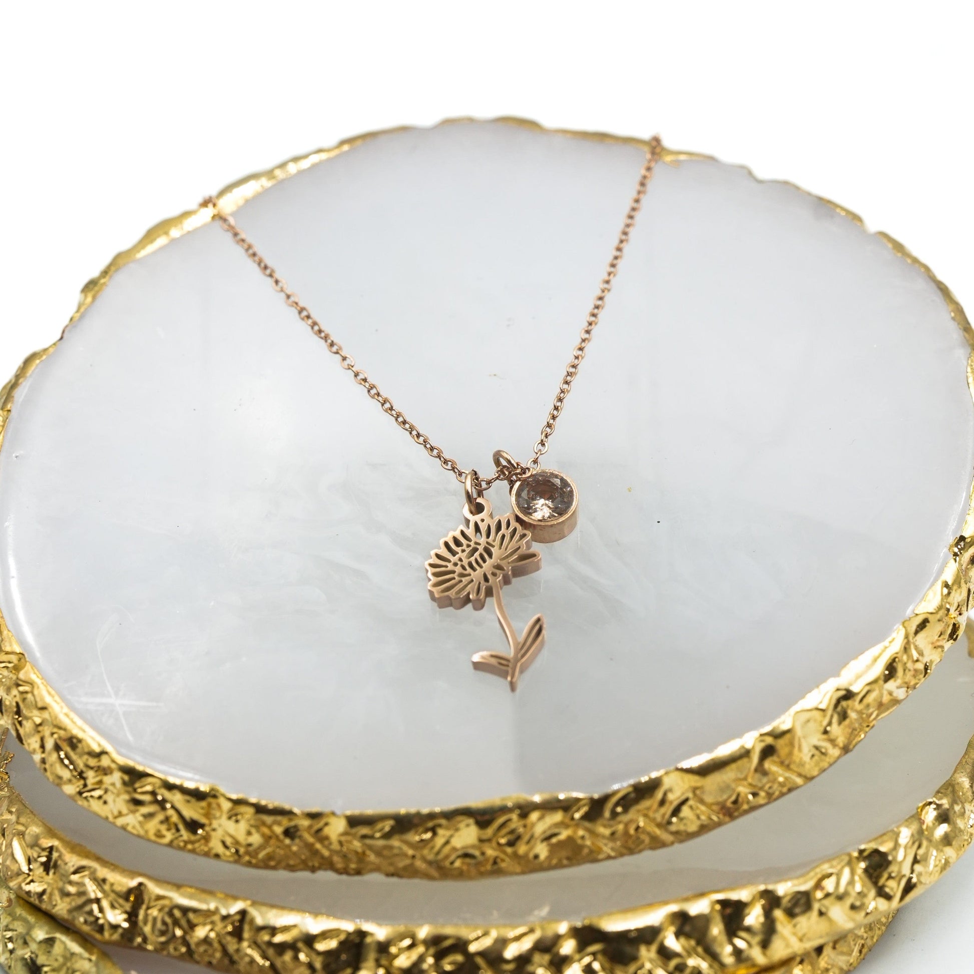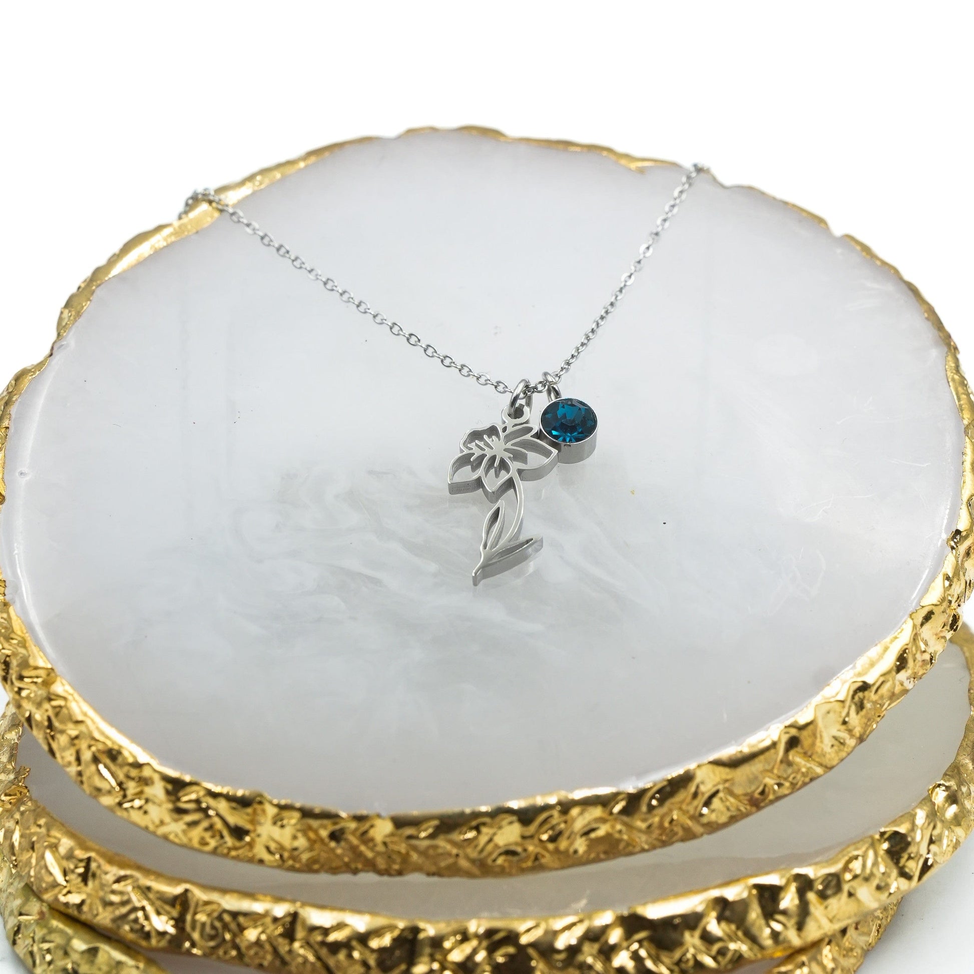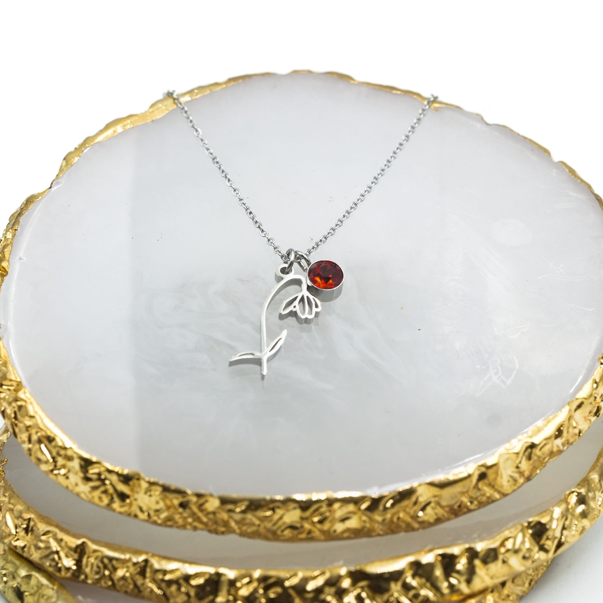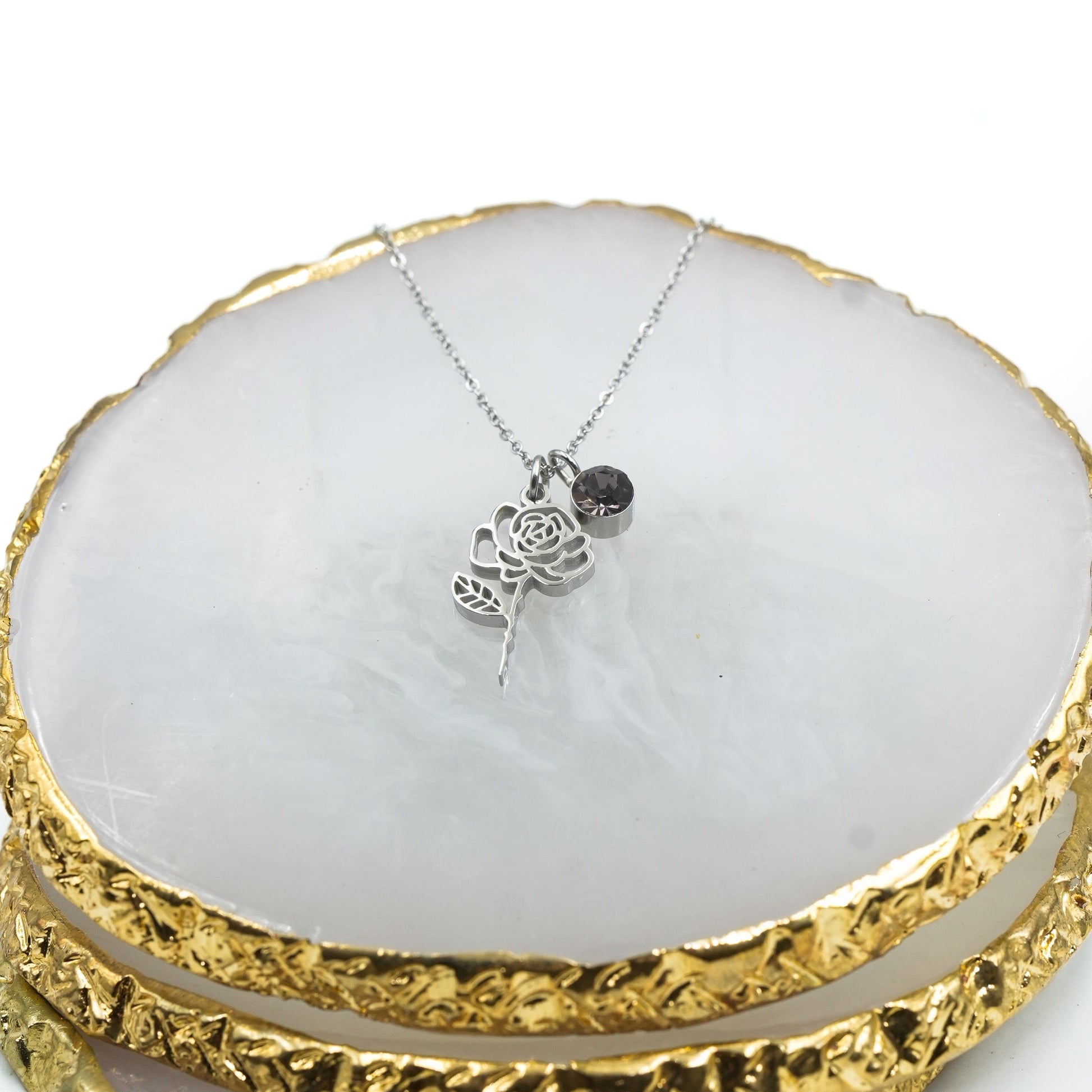 Introducing our stunning cut-out birth month flower pendant! It’s a symbol of beauty and growth. The delicate details of the flower represent the fragility of life and the importance of appreciating every moment. This pendant is not just an accessory, it's a reminder to stop and smell the flowers. You can even add a rectangular plate with a name to personalize it .