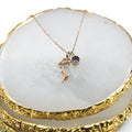 We make use of PVD plating PVD (Physical Vapor Deposition) plating is an advanced surface coating technique that involves depositing thin layers of material onto a substrate using a vacuum environment, resulting in enhanced durability, corrosion resistance. Although Pvd is more durable than liquid plating in normal costume jewellery that turns black, there will be some colour change in Rosegold items due to the process. It will change to an old gold after a while. Please note that color may differ slightly from how it appears on your screen due to varying monitor settings |